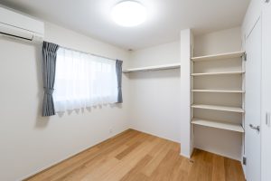 WICは家族の衣類をまとめて収納できる大容量タイプ。バッグや季節のものなど、かさばるアイテムもすっきり収まります。動線上に配置されているため、洗濯後の収納もスムーズ。毎日の暮らしに“片付けやすさ”をプラスしました。